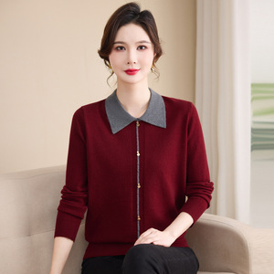 2025新款时尚毛衣娃娃领薄款妈妈上衣中年女士春秋长袖针织打底衫
