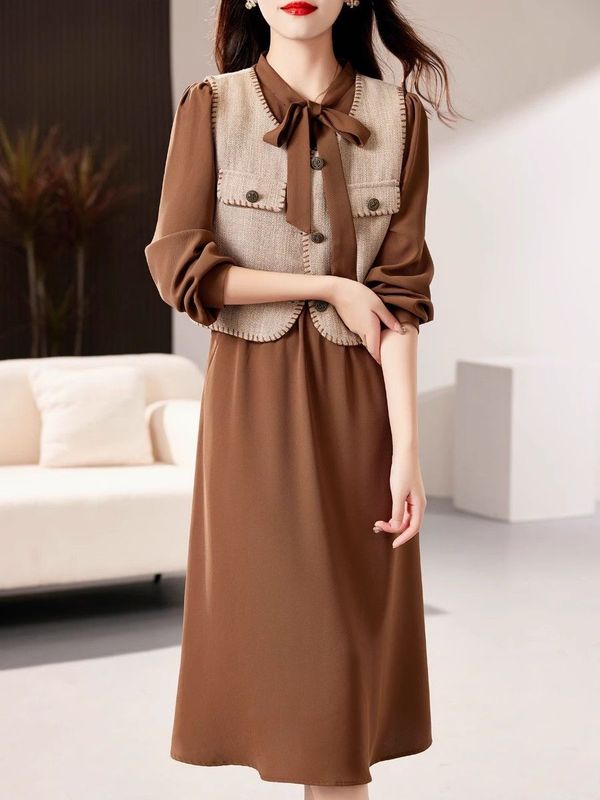 小香风马甲连衣裙两件套女时尚套装2025新款高级感春秋穿搭一整套