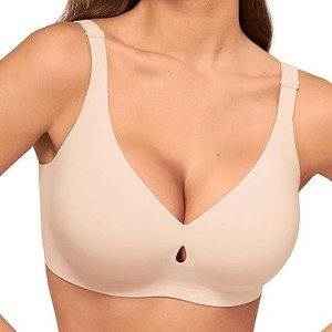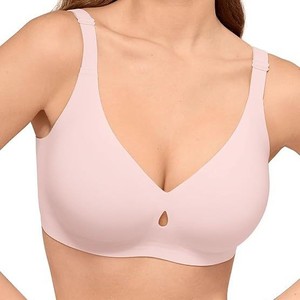 跨境亚马逊无痕大码文胸V领小水滴光面聚拢无钢圈舒适U型美背内衣