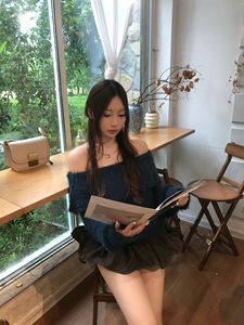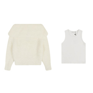Modimood毛绒绒一字肩露锁骨针织毛衣两件套东大门韩系休闲上衣