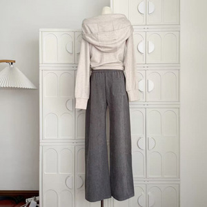 塞纳2025秋季新款燕麦色连帽卫衣外套+深灰色雪尼尔刺绣直筒长裤