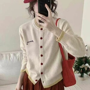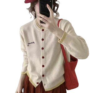 2025秋冬新款女装韩系设计感圆领毛衣长袖针织开衫气质上衣外套女