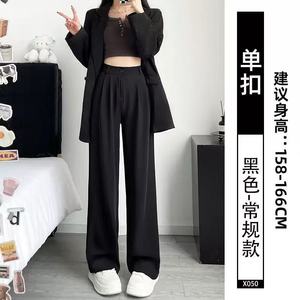 黑色西装裤女秋季2025新款高级感高腰垂坠感休闲裤直筒宽松阔腿裤