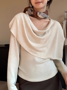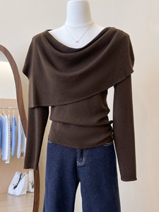 一勺甜 针织衫上衣+荡领披肩两件套女2025秋季套装92252