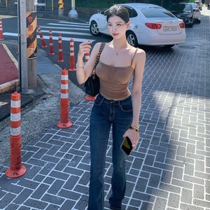 自带丰胯垫牛仔蓝特色微喇中低腰四季牛仔裤修身显瘦时尚拖地裤女