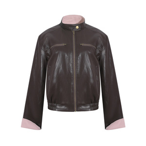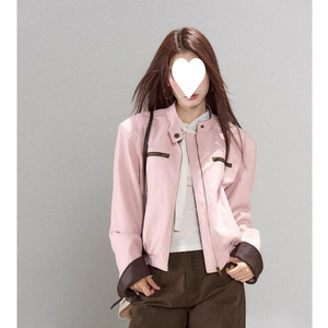 现货一颗小野莓粉色皮衣外套女年秋季新款酷飒独特超好看休闲夹克