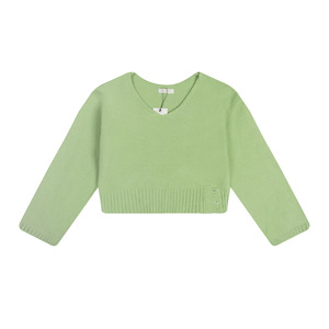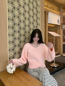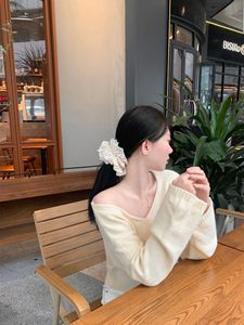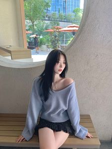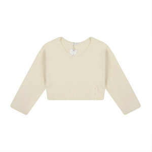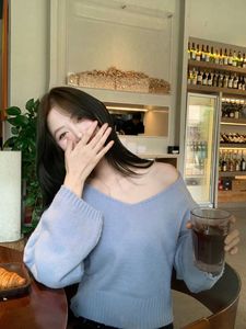 Modimood V领斜肩氛围纽扣收腰长袖针织衫纯欲百搭休闲INS上衣