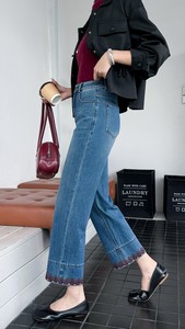 秋季新款刺绣九分牛仔裤波西米亚风裤脚刺绣直筒裤103