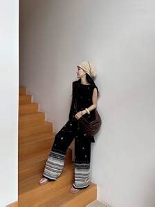 DIGM | 2025秋冬复古提花宽松阔腿裤松紧腰针织休闲裤女A3M036