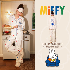 润妈【轻柔软】米菲纯棉睡衣女长袖可外穿休闲卡通开衫家居服套装
