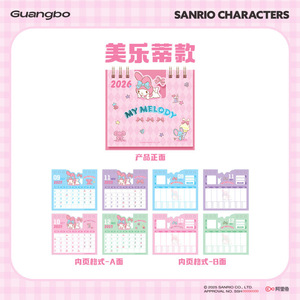正版三丽鸥台历库洛米美乐蒂日历2026年桌面台历计划本立式年历