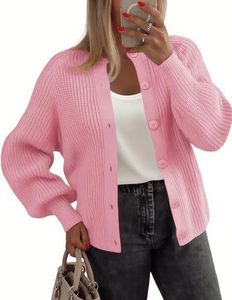 2025女式开衫毛衣长袖粗针织开衫圆领系扣秋季时尚服装现货款批发