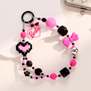 新款芭比手机链黑粉色甜辣妹多巴胺手机配饰ins串珠挂件链子饰品