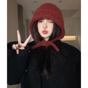 巴拉克拉法女秋冬天保暖针织帽子护耳出游骑行防寒毛线帽雷锋帽