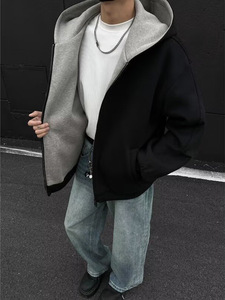 双色连帽开衫卫衣男春秋季宽松潮牌百搭美式夹克情侣帽衫上衣外套