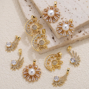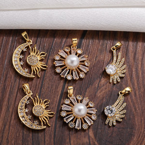 铜质星月珍珠镶钻吊坠套装 跨境高级感 女式时尚 DIY 项链配饰