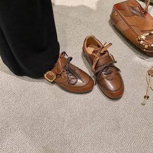 羊皮版~软底百搭德训鞋女2025新款复古休闲运动鞋轻便系带阿甘鞋