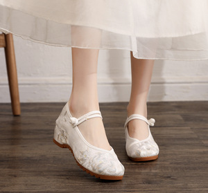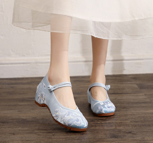 如轻 2023春款圆头内增高旗袍女鞋古风绣花鞋禅服茶服鞋舞蹈布鞋