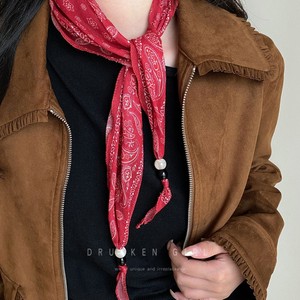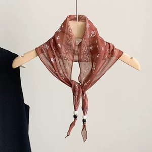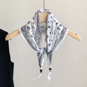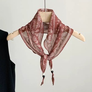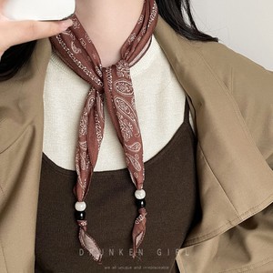 复古腰果边串珠丝巾项链女早秋时尚简约高级感百搭配饰丝巾颈链