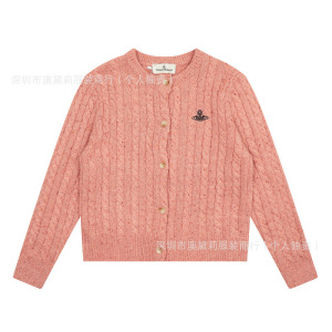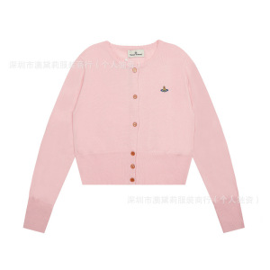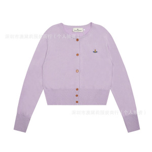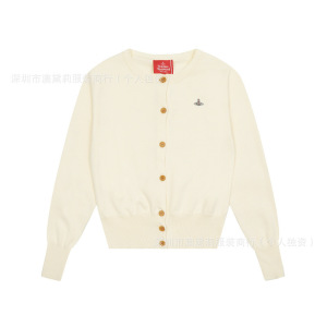 25SS西太后薇薇安土星经典款刺绣简约经典纯色羊毛针织开衫毛衣女