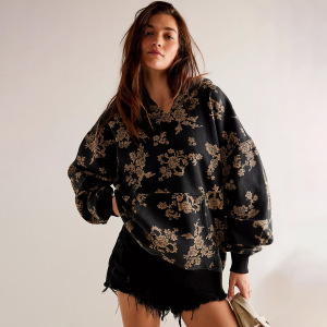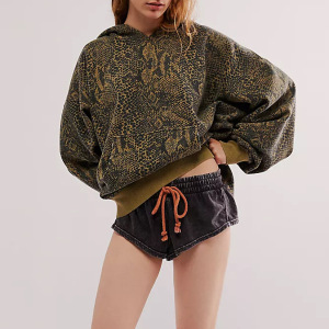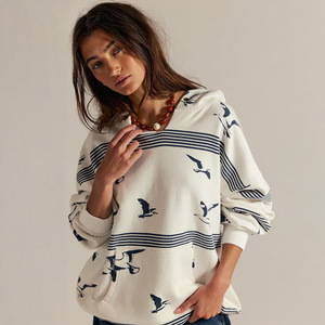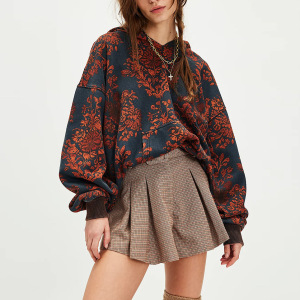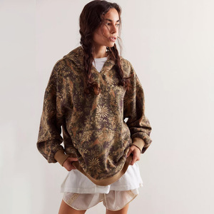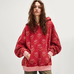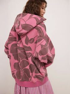 跨境热卖新品数码印花宽松带帽设计感卫衣美式保暖休闲长袖外套女