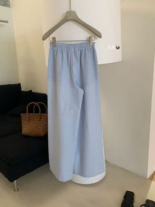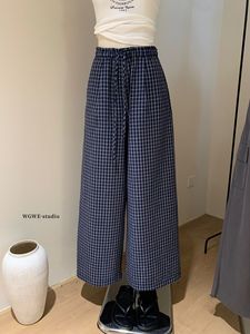 韩系慵懒风松紧高腰系带格子裤女宽松显瘦通勤遛弯裤休闲裤阔腿裤