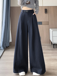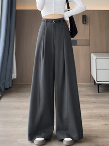 洗水棉西装裤女秋季新款高腰显瘦宽松垂感休闲直筒拖地阔腿裤