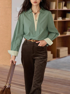 solighter法式复古假两件衬衫女秋季长袖上衣
