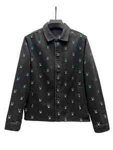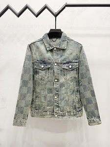 广州驴家L新款棋盘格字母刺绣牛仔外套夹克宽松男女驴家牛仔外套