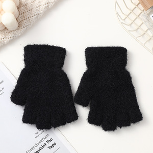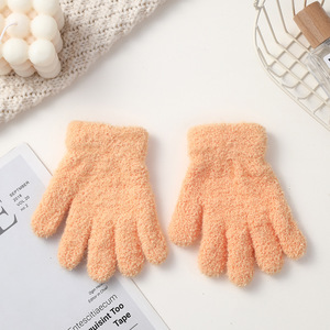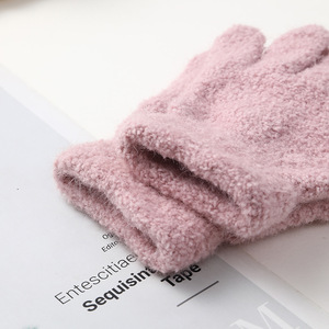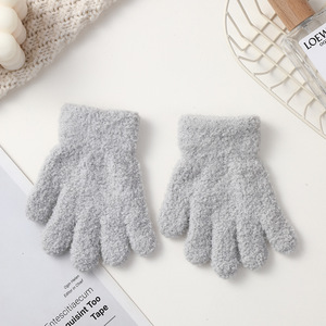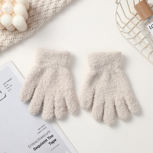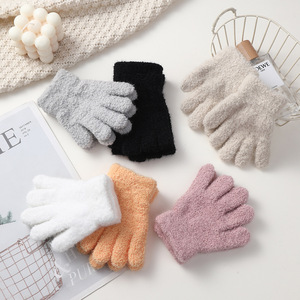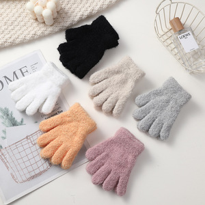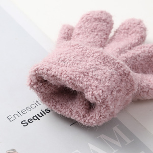 儿童保暖手套韩版针织手套加绒百搭简约纯色针织五指手套厂家批发