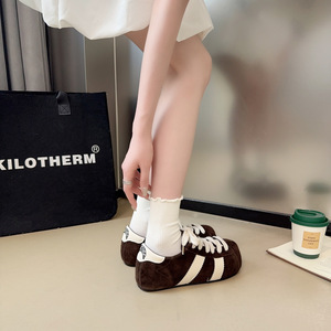 巴恩风奶糖豆包~秋季新款日系真皮内增高德训鞋女鞋阿甘鞋休闲鞋