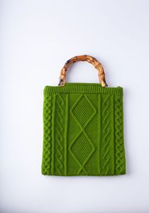 跨境秋冬新款针织 竹节手提包 手腕包Ins风 简约 编织毛线包 复古