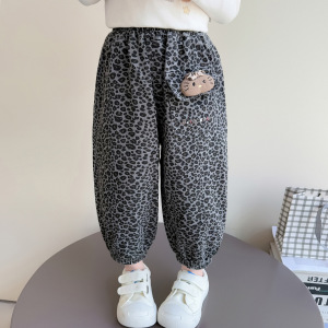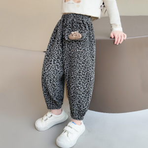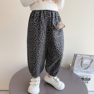 女童豹纹裤子春秋2025新款女孩宝宝秋季洋气韩版儿童装休闲长裤子