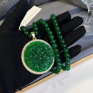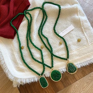 祖母绿高级项链女长款简约百搭毛衣链小众设计高级感吊坠合金配饰
