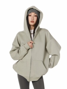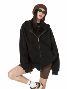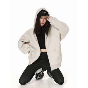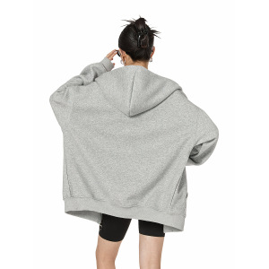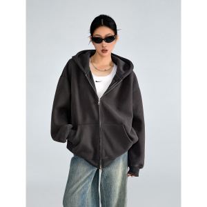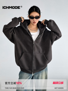 ICH MODE美式复古连帽深灰色卫衣外套女春季新款宽松拉链开衫上衣