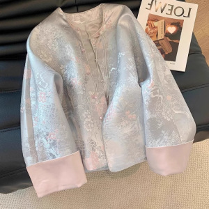 国风新中式袖口撞色提花外套女春秋独特好看宋锦印花盘扣上衣艺瑾