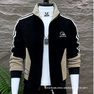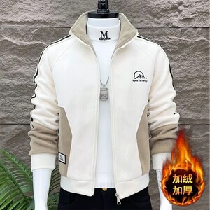 2025冬季新款男士夹克外套加绒加厚保暖时尚撞色立领百搭潮流上衣