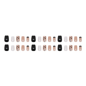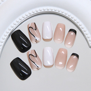 简约黑白不规则线条法式日常通勤假指甲可拆卸穿戴甲24片