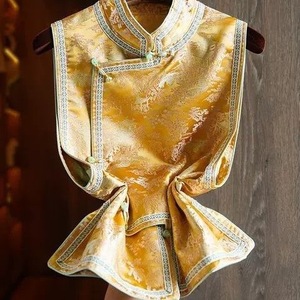 黄色高端宋锦提花仿真丝马甲背心女原创设计桑蚕丝新中式唐装上衣