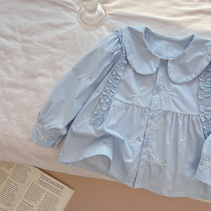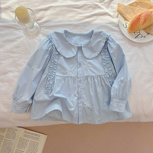 女童长袖棉质娃娃衫木耳边衬衣女宝衬衫2025秋季新款韩版甜美法式