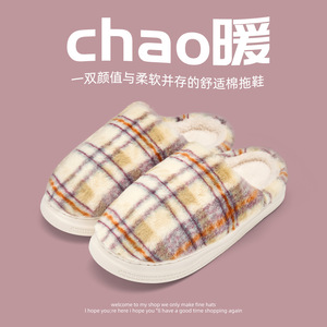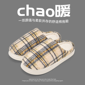 保暖棉拖鞋女款家居秋冬2025新款室内家居厚底防滑毛绒冬天拖鞋男