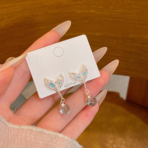 精致微镶锆石鱼尾耳环女时尚百搭气质耳钉独特绝美流苏耳饰品批发
