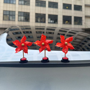 旋转国旗风车爱国红旗摆件汽车中控台装饰电动车内饰摩托车载摆件