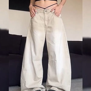 美式复古大码做旧立体裁剪工装裤子女辣妹宽松bf慵懒风拖地弯刀裤