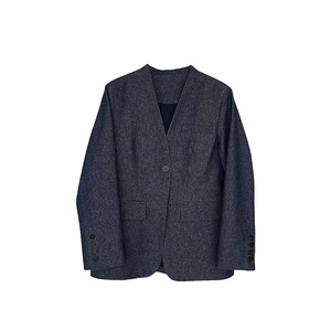 现货厂家批发 牛仔西装2025新款v领复古通勤一粒扣西服外套女