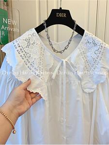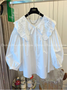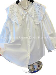 大码300斤蕾丝刺绣娃娃领白色纯棉衬衫秋季新款宽松显瘦漂亮上衣