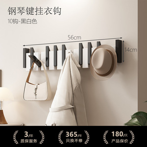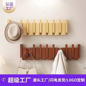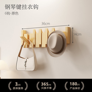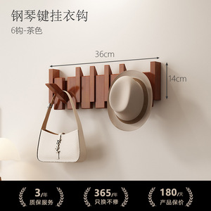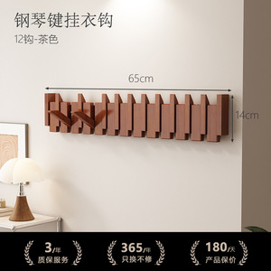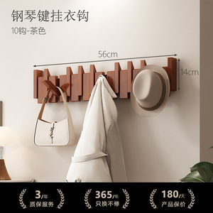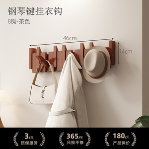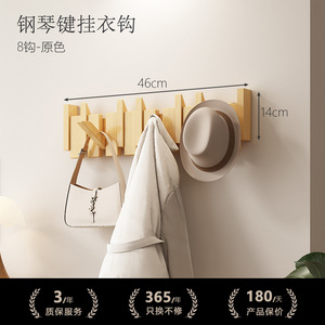 钢琴键挂衣架实木墙上壁挂钩卧室玄关入户进门后置物免打孔衣帽架