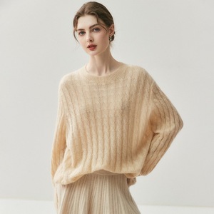 山羊绒松弛感宽松针织衫慵懒风2025秋冬新款圆领麻花毛衣女羊毛衫