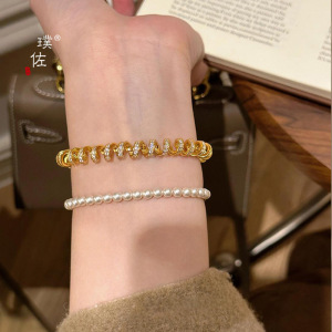 璞佐金店同款沙金镶钻电话线缠绕手链轻奢风气质简约叠戴小众手饰