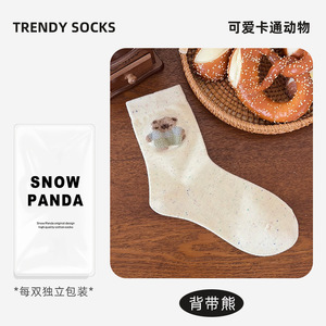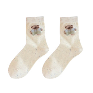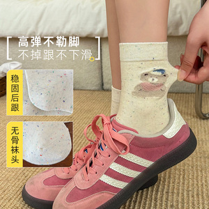 秋季新款女士袜子可爱卡通女袜吸汗防臭抗菌点子纱百搭中筒袜批发